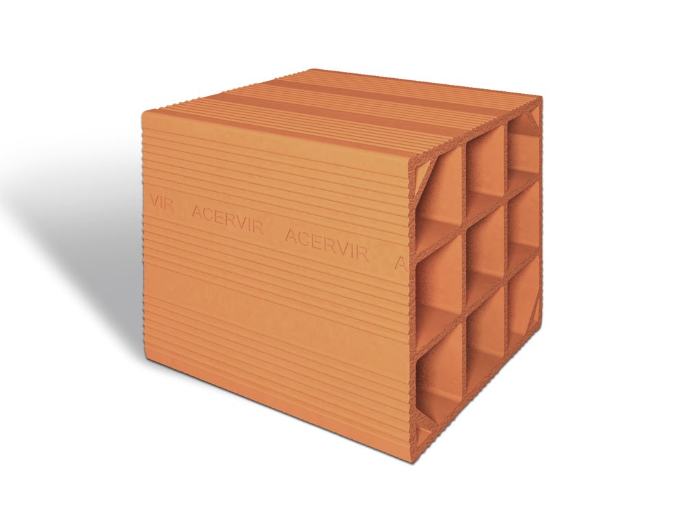 Meia peça do bloco de vedação FH 19x19x39, utilizada em finalizações de paredes em aberturas de vãos e encontros com pilares, oferecendo a obra mais velocidade de execução e menor perda de material decorrente de quebras improvisadas de blocos inteiros na obra.