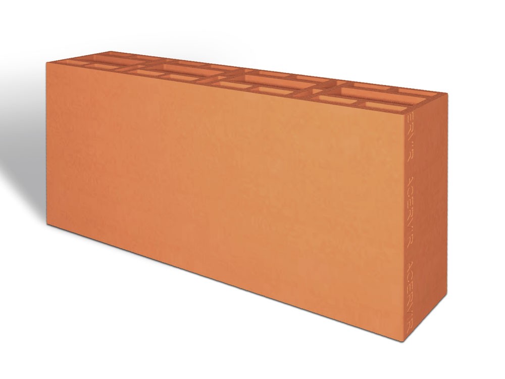 Bloco cerâmico de vedação com parede lisa e furo vertical, utilizado para fechamento de paredes sem função estrutural.