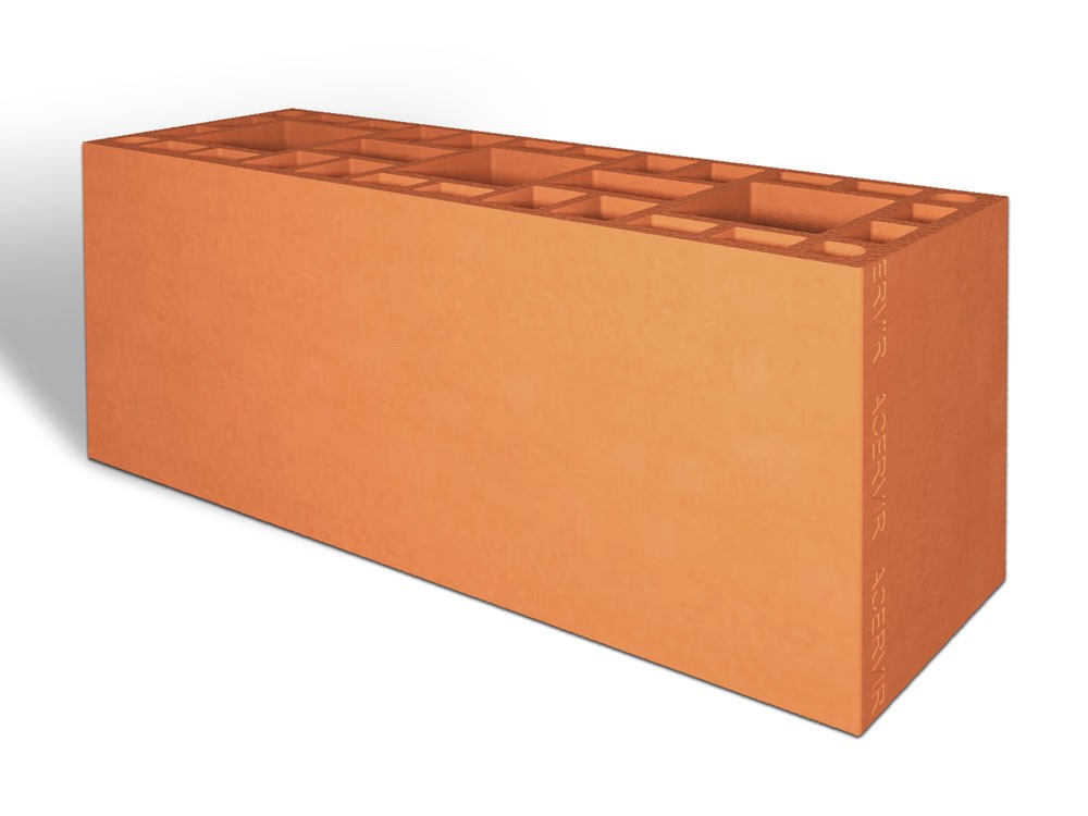 Bloco cerâmico de vedação com 03 furos, de parede lisa e furo vertical, utilizado para amarrações em “T” e “X” da linha de blocos de vedação FV 14x19x29.