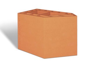 Bloco cerâmico estrutural com ângulo de 45° para execução de paredes angulares, dispensando o uso de caixarias e concreto para preenchimento.