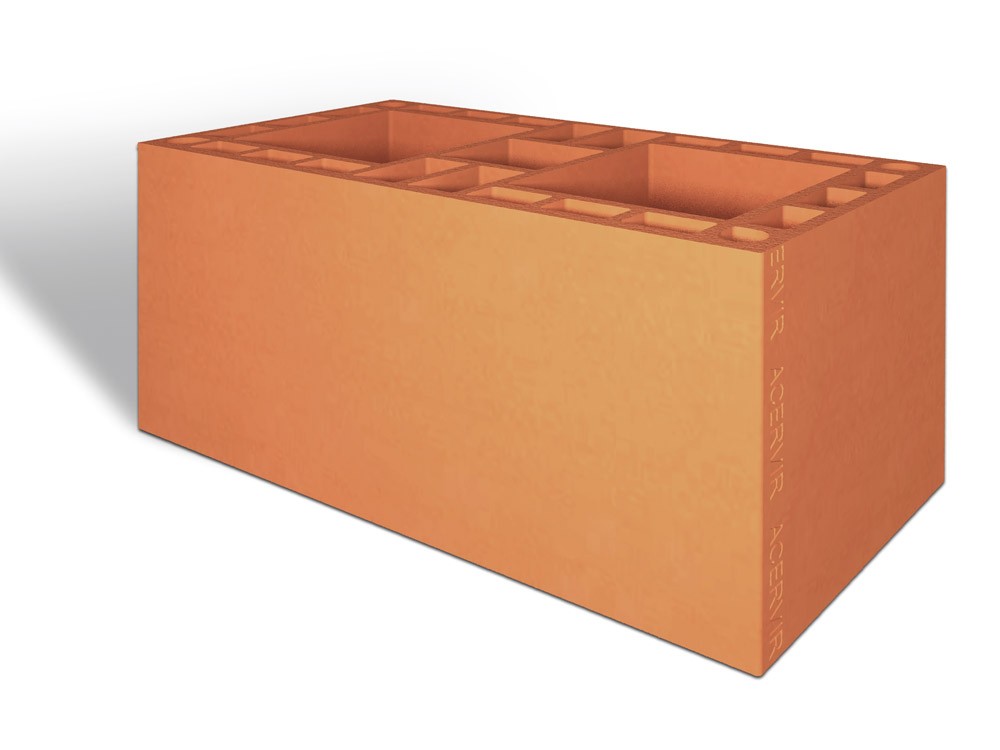 Bloco cerâmico estrutural com parede lisa e furo vertical, utilizado para elevação de paredes com função estrutural. Resistência de compressão mínima de 3mpa.