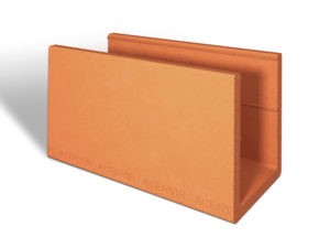 Canaleta cerâmica da linha de blocos estruturais 14X09X09X19, utilizada para executar vigas, vergas e contra vergas, dispensando o uso de madeira para as caixarias. Oferece mais velocidade da execução da obra, economia e redução de entulho.