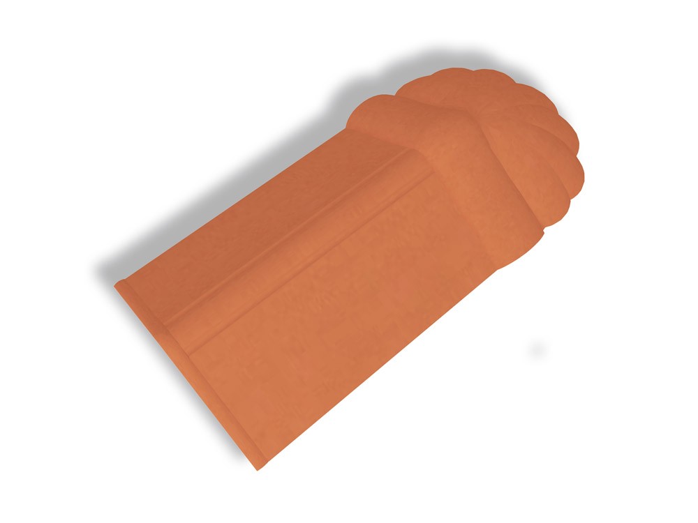 Peça cerâmica para aplicação no final de cumeeiras e espigões.